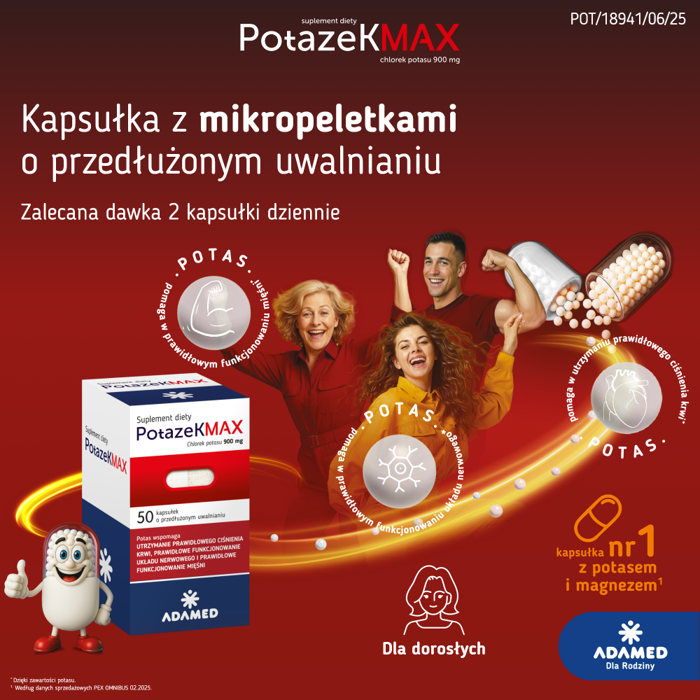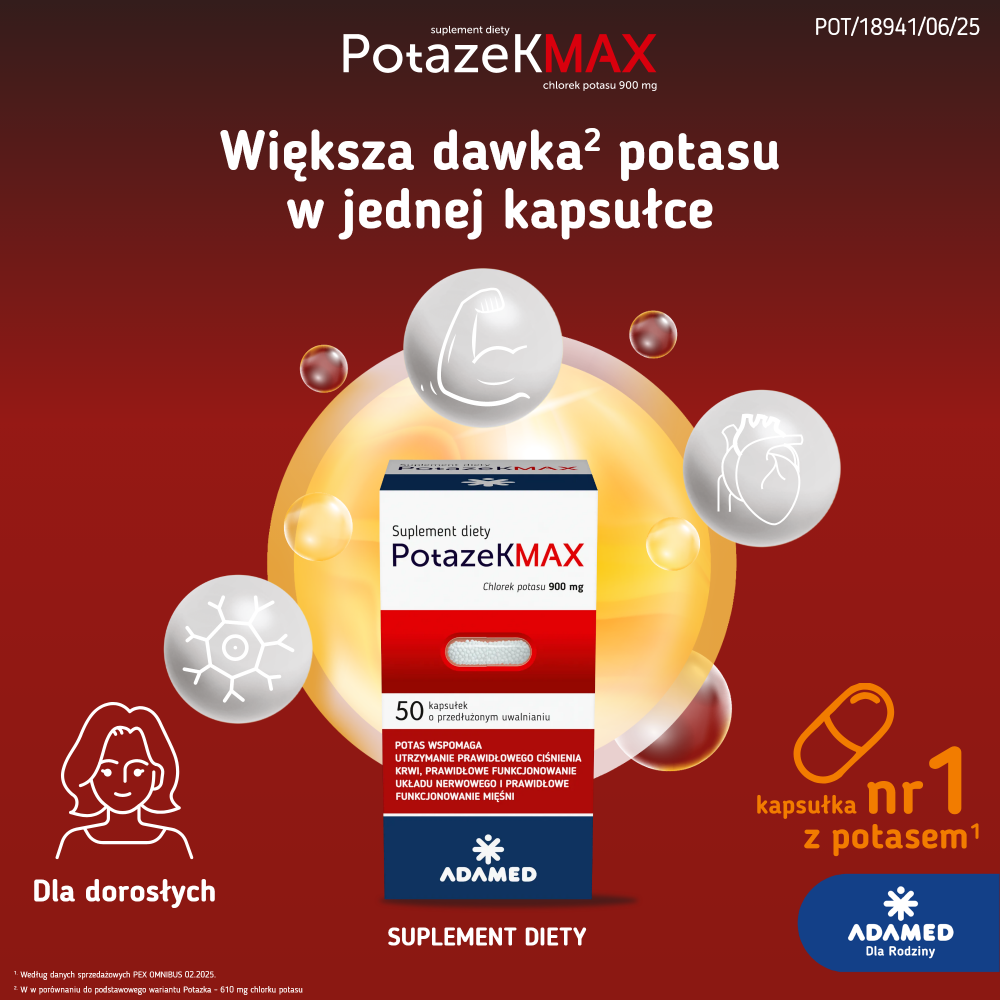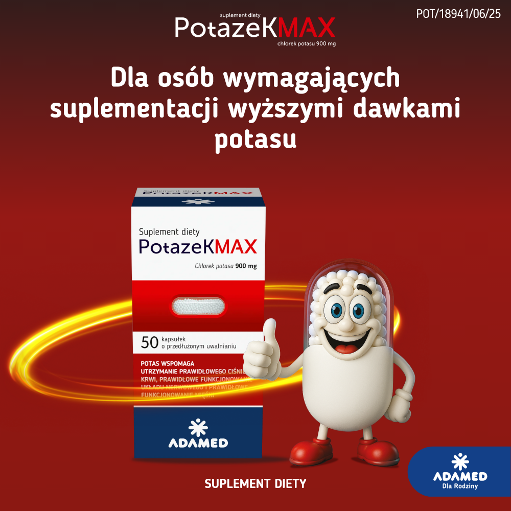 Suplement diety PotazeK MAX przeznaczony jest do stosowania jako preparat ułatwiający pokrycie zapotrzebowania organizmu na potas. PotazeK MAX suplement diety polecany jest w szczególności osobom dbającym o prawidłowe ciśnienie krwi.