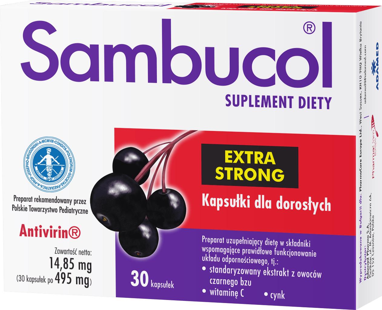 Sambucol Extra Strong, kapsułki ze składnikami wspierającymi układ odpornościowy dla dorosłych, 30 szt.